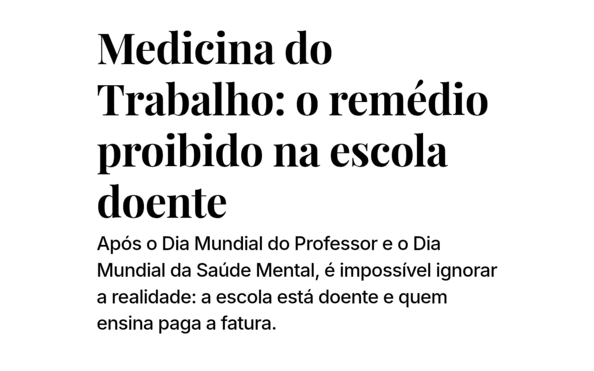Após o Dia Mundial do Professor e o Dia Mundial da Saúde Mental, é impossível ignorar a realidade: a escola está doente e quem ensina paga a fatura.
